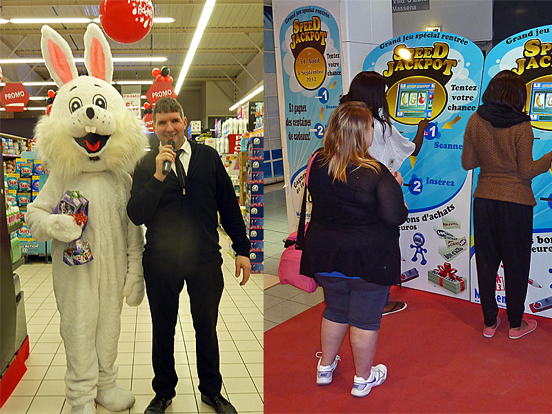 Aujourd’hui, la société SPEEDY EURO ANIMATION vous propose une très grande diversité pour la réussite de votre événement commercial. Faire venir le client sur votre point de vente ainsi que la dynamisation de votre magasin avec à la clé une augmentation de votre panier moyen restent notre principal objectif.